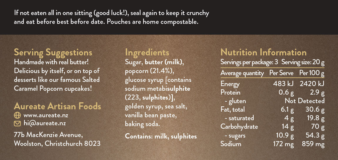Serving Suggestions: Perfect for movie nights, dessert toppings, grazing boards, or adding a caramel crunch to your baking. If not all eaten at once, seal again to keep crunchy and eat before the best before date.